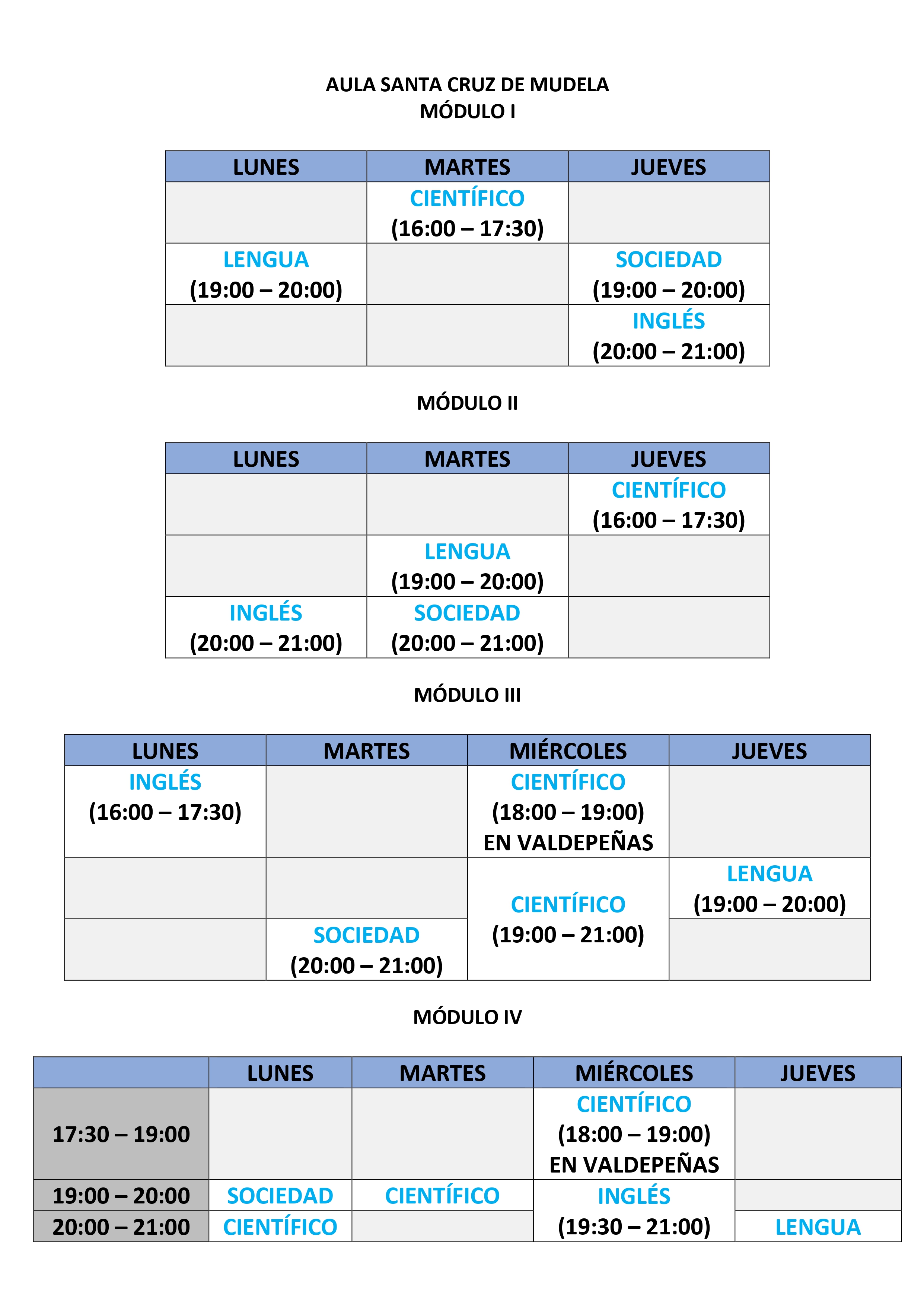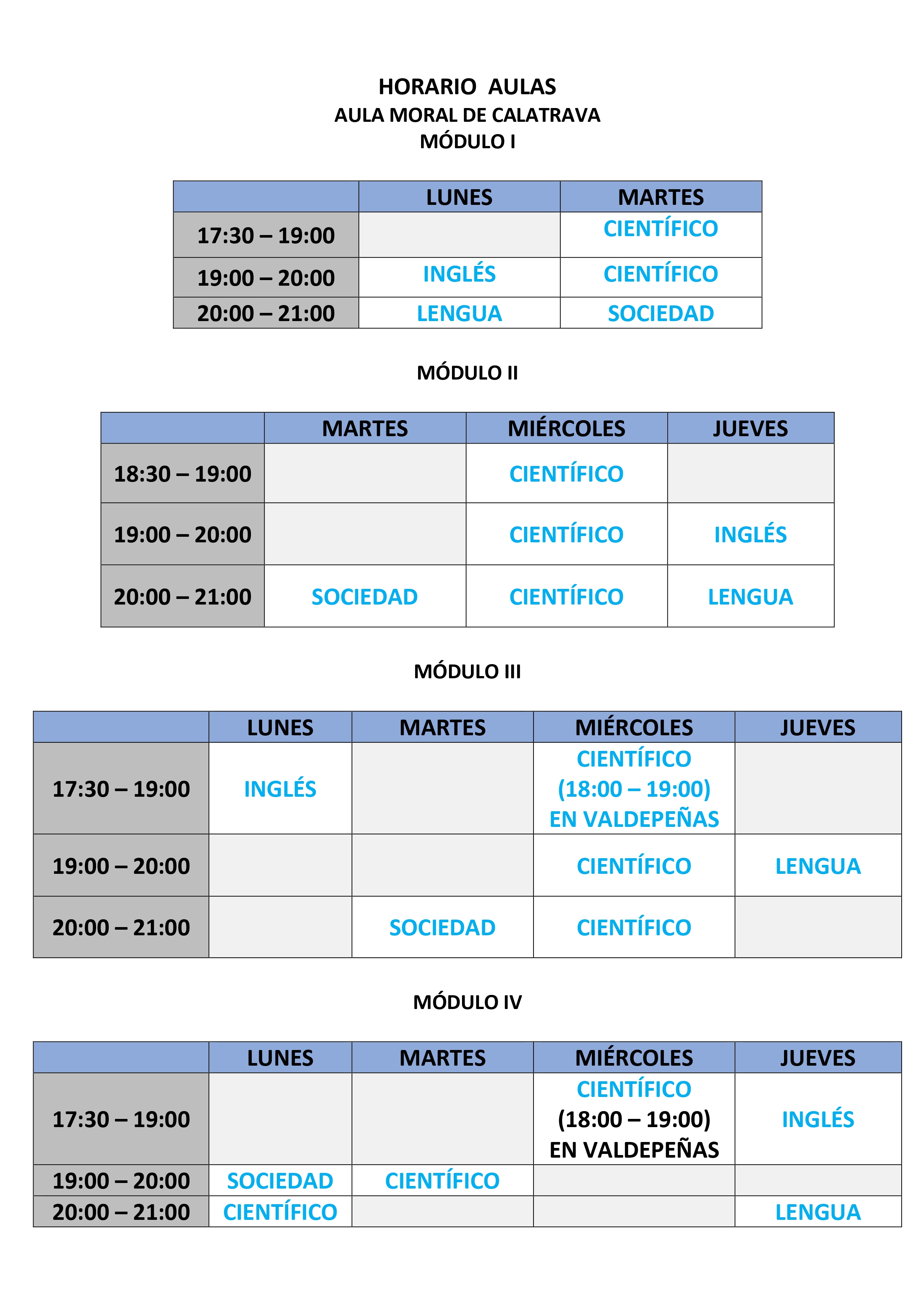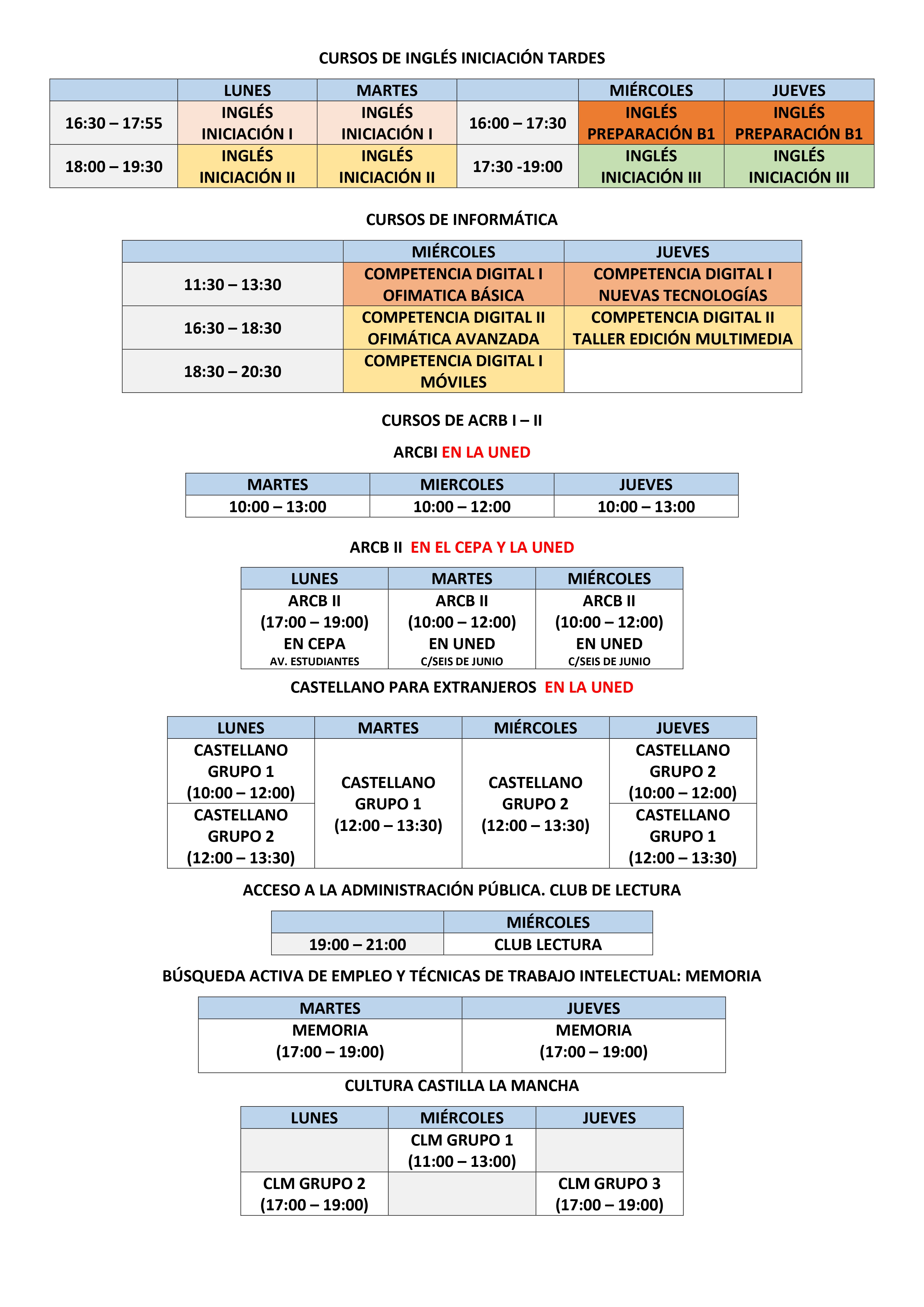 Para cualquier duda, se ruega ponerse en contacto con el centro de Valdepeñas en horario de 9 a 13:00 horas y en las aulas de Moral de Calatrava y Santa Cruz de Mudela de 16:00 a 20:00 horas.